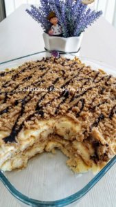 A pudingot elkészítjük a leírtak szerint. A babapiskótát rumaromával elkevert tejben megforgatjuk. A tál alját telerakjuk babapiskótával, erre jön egy sor vaníliás puding, majd ráreszeljük az egyik csomag gesztenyét. Ugyanígy járunk el még egy sorral (piskóta-puding-gesztenyepüré). Tetejét tejszínhabbal, csokiöntettel díszíthetjük.