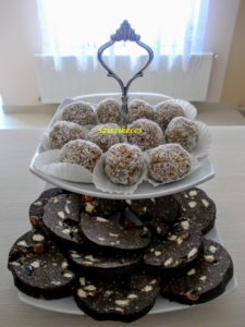 A vizet egy lábasba öntjük, a porcukrot, a kakaót és a margarint hozzáadjuk, kevergetve 5-6 percig főzzük. A tűzről lehúzzuk, a rummal ízesítjük, a kétféle kekszet és a zselés cukrot belekeverjük. Ha túl száraz, egy kis tejet adhatunk hozzá. Egy őzgerincformát folpackkal kibélelünk, a kekszes masszát elsimítjuk benne. Amikor kihűlt, 2-3 órára betesszük a hűtőszekrénybe, hogy megdermedjen. Tálaláskor vágódeszkára borítjuk, a folpackot lehúzzuk róla, és a keksztekercset kisujjnyi vastagon fölszeleteljük.