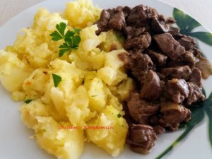 Köretként burgonyapürét, főtt krumplit, hagymás -petrezselymes krumplit szoktam hozzá készíteni. Ha hagymás krumplival csinálom, akkor 4 hagymát teszek oda dinsztelni, és amikor már jó, akkor a felét kiveszem, és hozzákavarom a megfőtt krumplihoz.