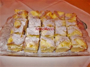 Húsvétra készítettem: hamis túrós szelet. Nekem nem igazán van túró íze, én simán pudingos szeletnek nevezném, de nagyon finom.