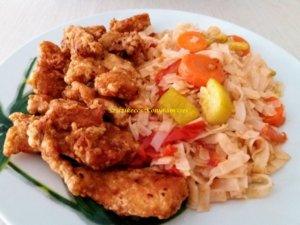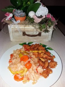 Nem vagyok odáig az ázsiai konyháért, de férjecske észrevette ezt az ételt az egyik újságban, és kérte, hogy készítsem el neki. Örültem, mert legalább megoldódott két napra a mit főzzek kérdés. Én csak a húst kóstoltam, de neki nagyon ízlett az egész, úgy ahogy van. Aki szereti az ilyen jellegű ételeket, az készítse el mindenképp 🙂
