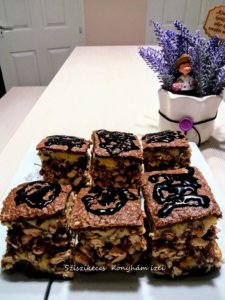 Az ősz nálunk a családi ünnepek sorozata, így szinte minden hétvégén vendégeket várunk, és már-már köztudott, hogy mindig új desszerttel készülök. Most ezt a különleges töltött gesztenyés kockát néztem ki. Nem éppen úgy néz ki, mint ahogyan a szakácskönyvben láttam, de az íze finom, ennél több meg nem is kell 🙂
