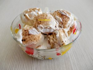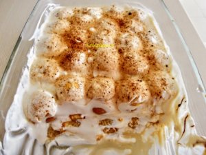 A tejben feloldjuk a kapucsínót. A tejfölt a cukrokkal és a rumaromával összekeverjük. Egy jénai aljára teszünk egy keveset a krémből, erre jön a kapucsínóban megmártogatott babapiskóta, majd újabb krém, piskóta és így tovább. A tetejére krém kerüljön, amit megszórunk kakaó-és kapucsínópor keverékével. Pár órára hűtőbe tesszük.