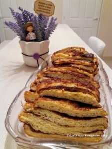 Nem is olyan régen volt nagy sláger ez a kalács, a készítéséből akkor mégis kimaradtam. Most viszont megláttam egy újságban, és éppen kapóra jött, mikor férjecske azt mondta: “Úgy enne egy kis kalácsot!” Másnap el is készítettem, nem bántam meg, isteni finom puha, foszlós a tésztája. Másnapra egy nagyon pici maradt belőle, de még akkor is ugyanolyan omlós volt. Egyedül a 2x közel egy órás pihentetési idő a hosszú folyamat, az elkészítése nagyon egyszerű. Fázisfotók a kollázson, csak sajnos nem sorba rakta be a képeket, de beszámoztam 🙂
