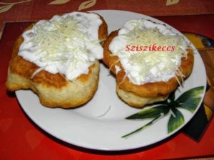 Az élesztőt langyos, cukros tejben felfuttatjuk. A liszthez hozzákeverjük a sót, és a tejfölt, majd az élesztős tejet. Ha túl lágy a tészta, adjunk még hozzá lisztet. Összegyúrjuk, majd meleg helyen kelesztjük (én egy óráig kelesztettem). Gombócokat csípünk belőle, majd széthúzgáljuk és forró olajban kisütjük.