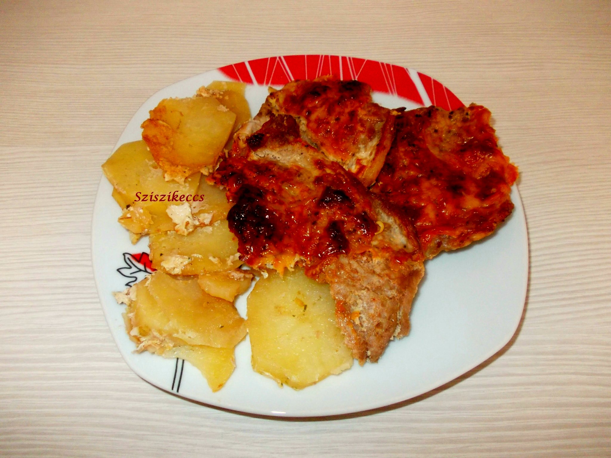 A megtisztított, felkockázott burgonyát sós vízben főzzük kb. 10 percig, szűrjük le. Forgassuk össze a burgonyát a hússal. Tegyük egy tűzálló tálba a keveréket, forró sütőben süssük 35 perc alatt készre.