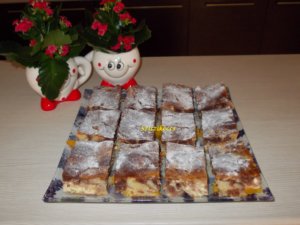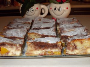 Tegnap kolléganőmnek születésnapja volt, és ilyen finomsággal kínált minket. Elkértem a receptjét, este már megsütöttem, ma pedig viszem sógoromnak névnapjára. Nagyon finom, kiadós sütemény.